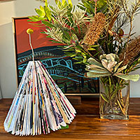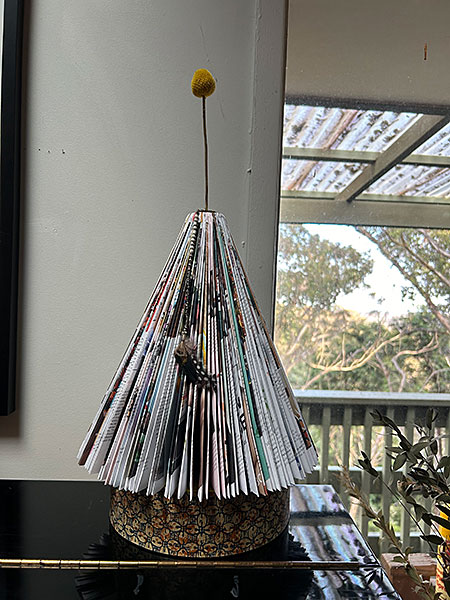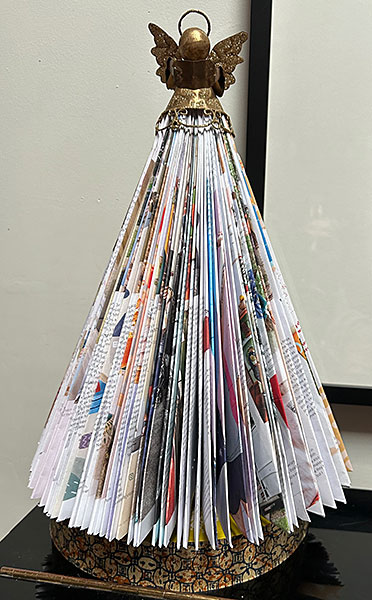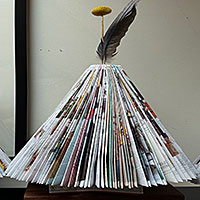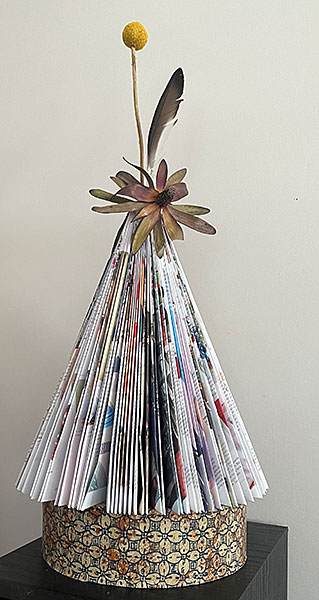 Since exploring the concept of The Tree of Life in earlier collographs, I was inspired to focus on creating something more 3-dimensional, using and revitalising found objects, and the plentiful magazines at home containing quality paper great for folding. The first to emerge from this series is 'Stories in the Press' (Bob Dylan, Idiot Wind).