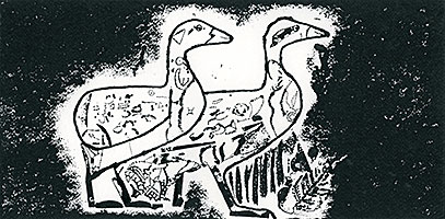 Myth, poetry, music and art have always been areas of sustained interest and inspiration for May’s art. The first in this series is inspired by the line “Two by two, into the foggy dew” (Dylan, '2 x 2') and Egypt’s famous ‘Meidum Geese’ painting.